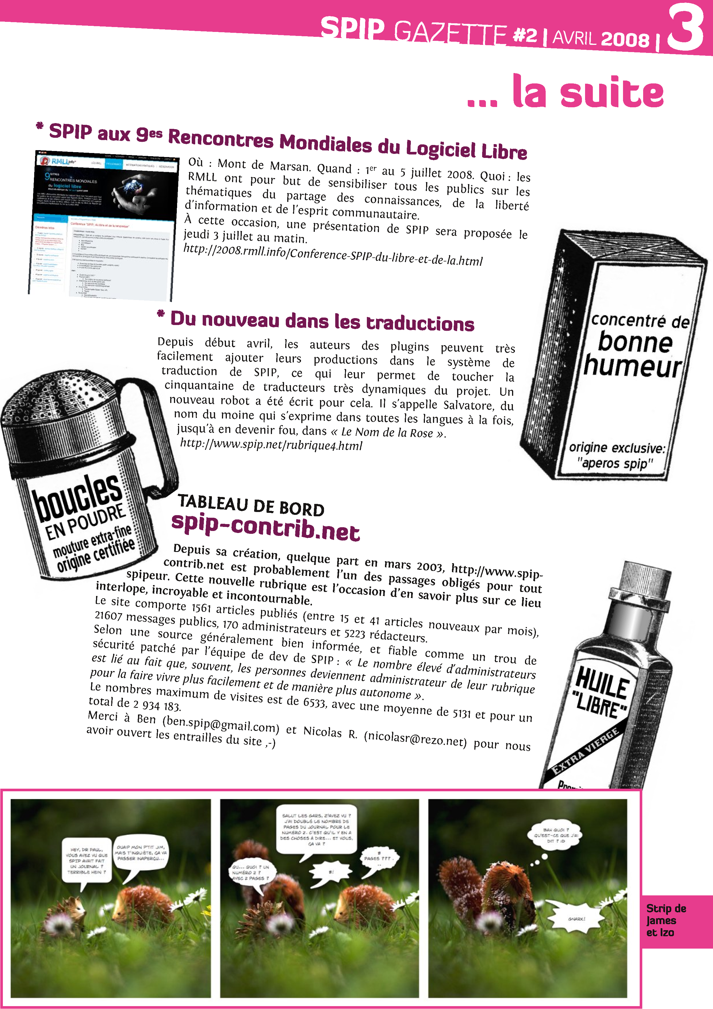 (backchich.info), et remonter le temps (Penelopes.org). Une Gazette sans code pour parler usages et personnages. Une Gazette, comme une petite aventure partagée, dans un Grand Tout — la spirale SPIP....